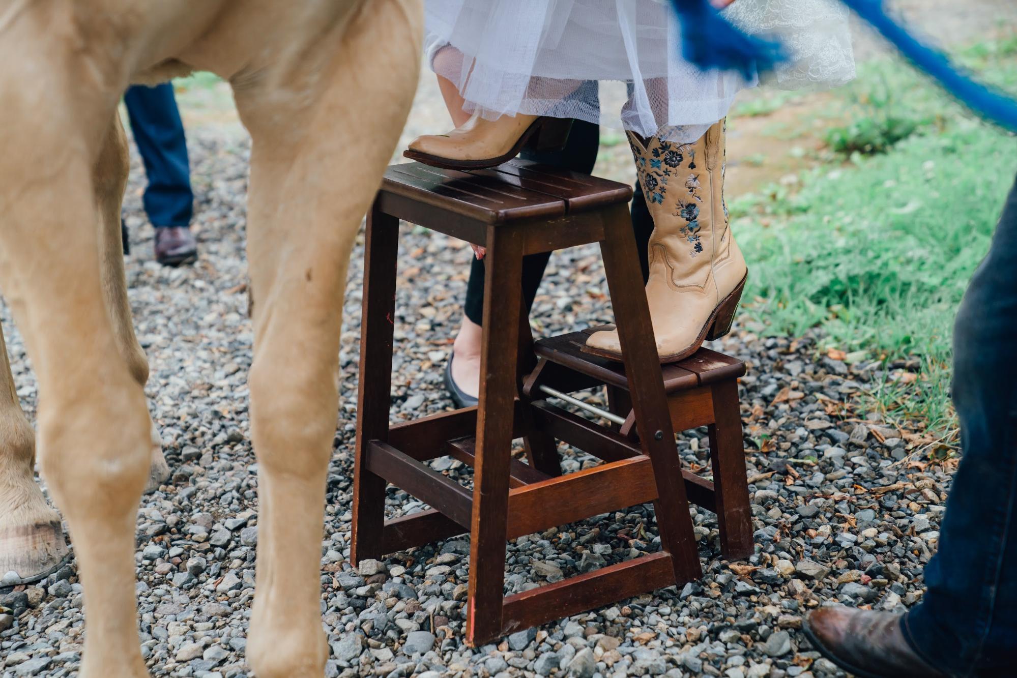 高いヒールの靴では馬に乗るのは危ないので、安定感のあるウエスタンブーツに。