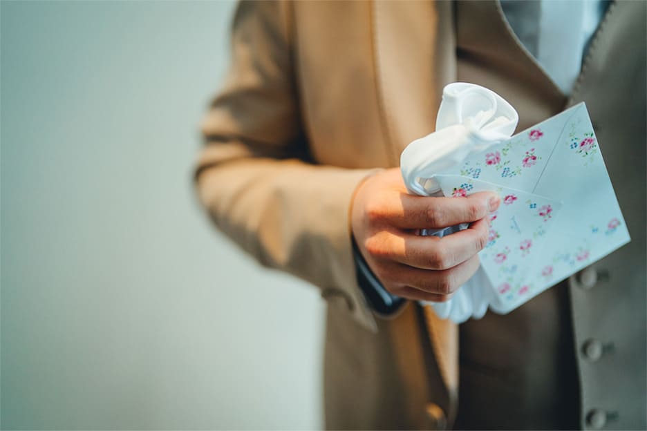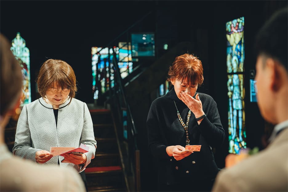 今日までの様々な出来事と想いが走馬灯のように流れ、堪えきれず溢れた新郎様の涙に、新婦様も私たちも思わず涙。