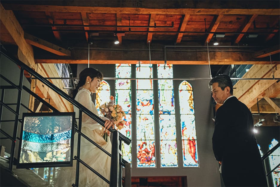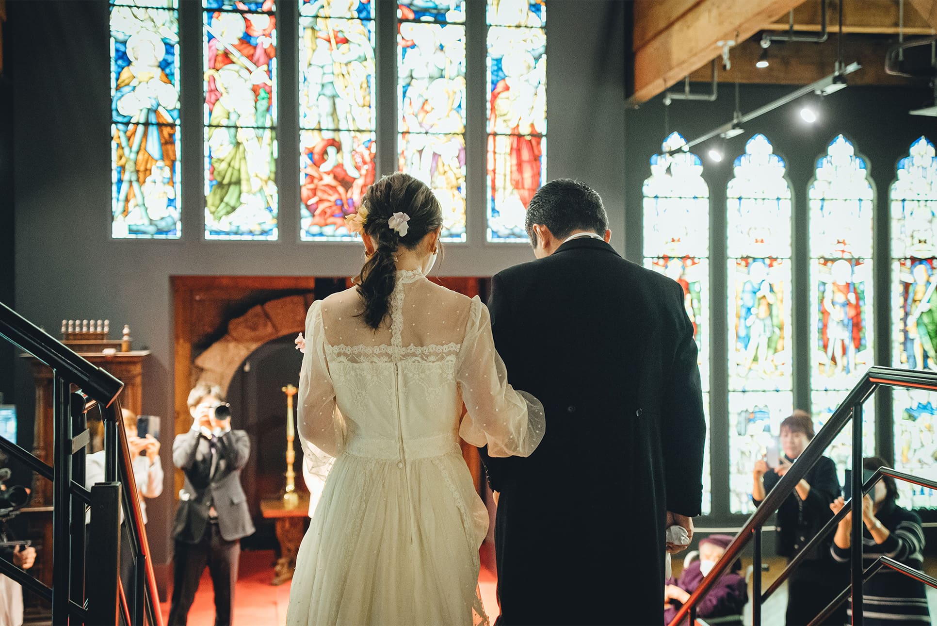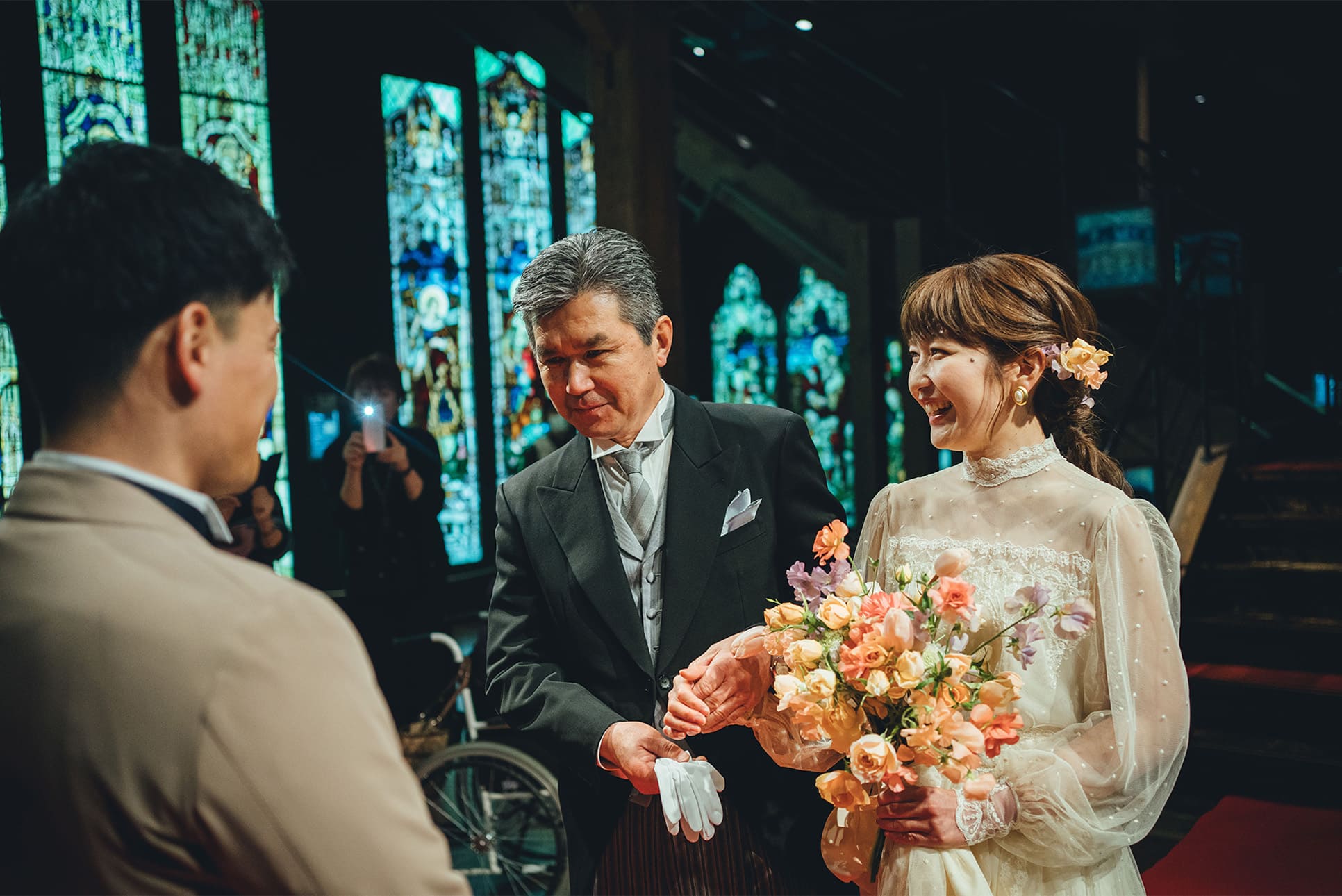初めてのことに緊張しながらも嬉しそうに、「大切な娘をよろしく」と大事に大事に新婦様の手をぎゅっと握り、新郎様に託されていた姿がとても印象的でした。 お父様の長年の夢が叶った瞬間でもありました。
