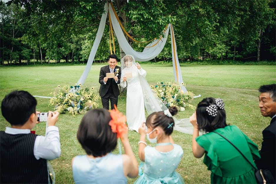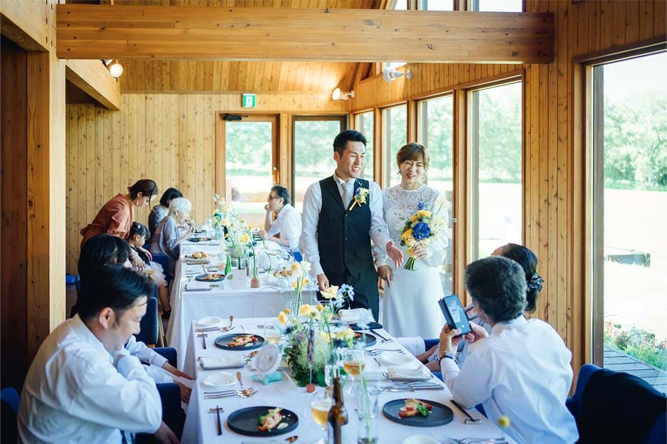 実はこの屈斜路湖でのファミリーウエディングは結婚式の前編で、1週間後には札幌でご友人とお気に入りのカフェを貸し切っての《ギャラリーウエディング》を開催したおふたり。