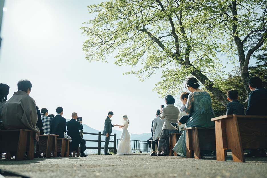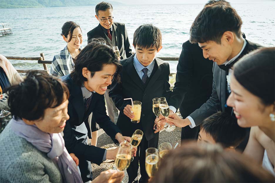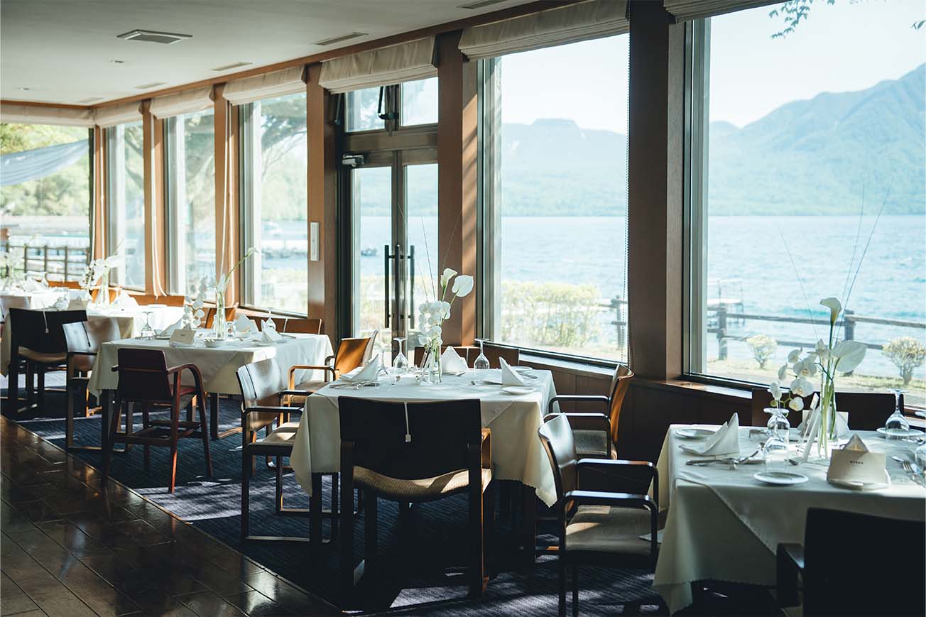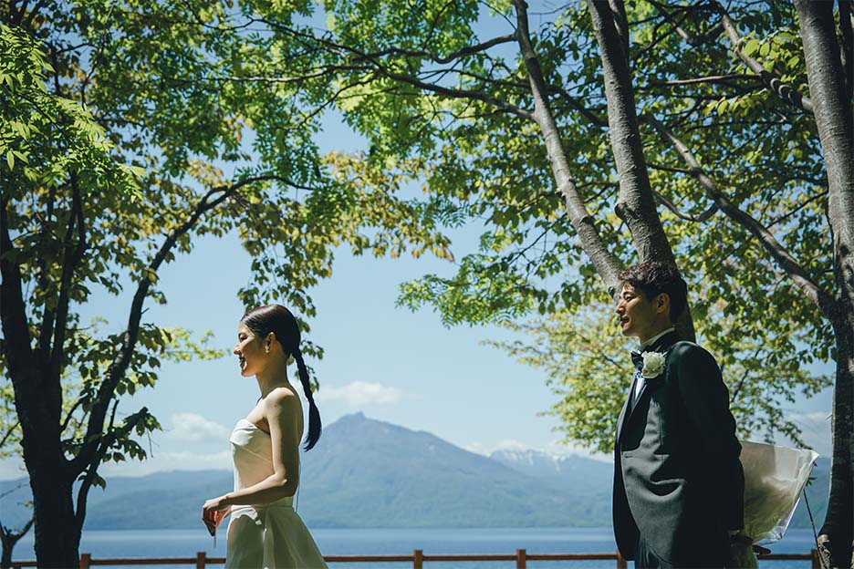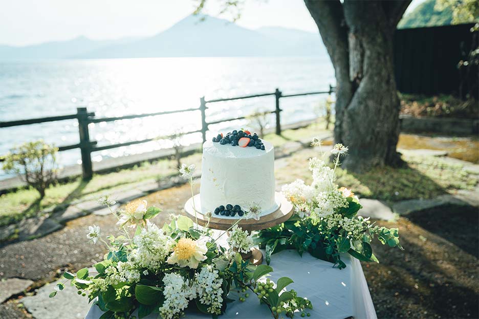 挙式・アフターセレモニーは支笏湖の自然の中で“結婚”を味わい、レストランではお食事を中心にゲストと近い距離感で会話を楽しめるパーティーに。