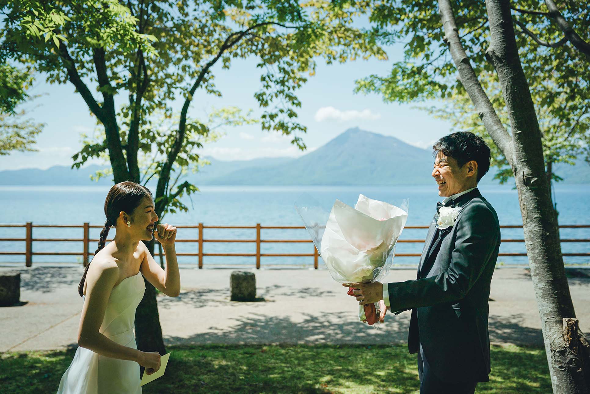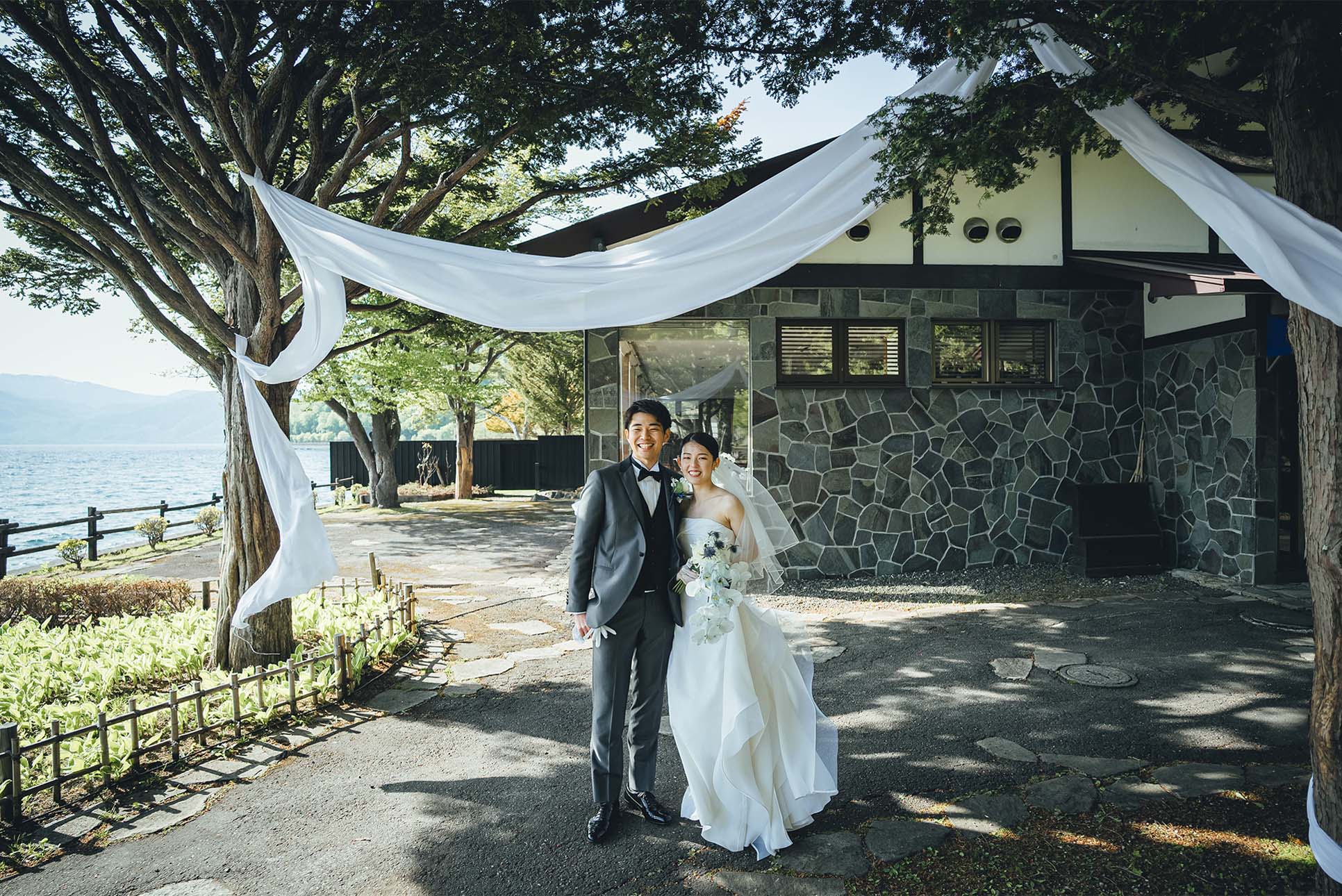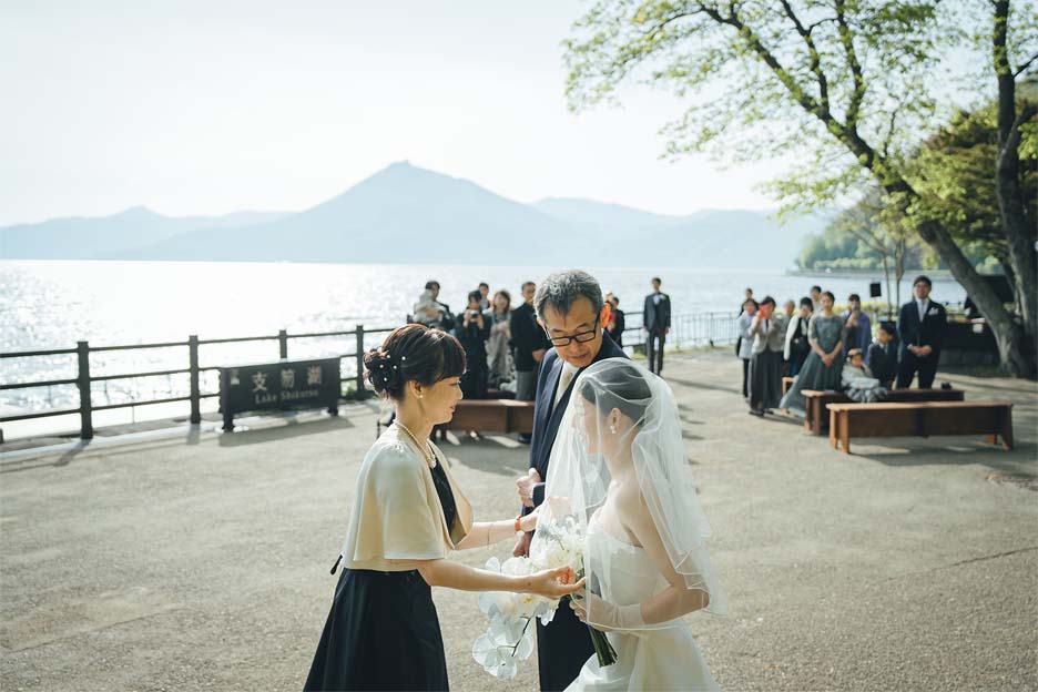 挙式・アフターセレモニーは支笏湖の自然の中で“結婚”を味わい、レストランではお食事を中心にゲストと近い距離感で会話を楽しめるパーティーに。