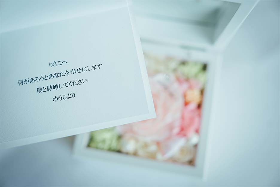 おふたりのこれまでをヒアリングさせていただいた際に、ポロッと口にされた佑二さんの言葉から、リベンジプロポーズをすることに。