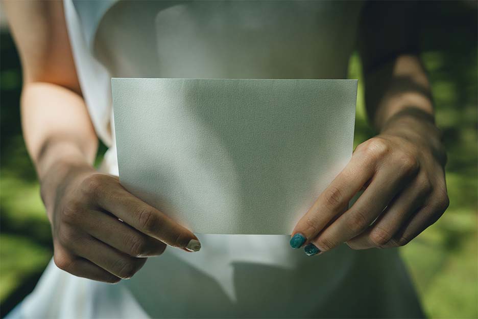 コンセプトである《Shuttle》に合わせて、当日はお互いへの気持ちを手紙にしたためていただき、想いを交わし合うことからはじまりました。