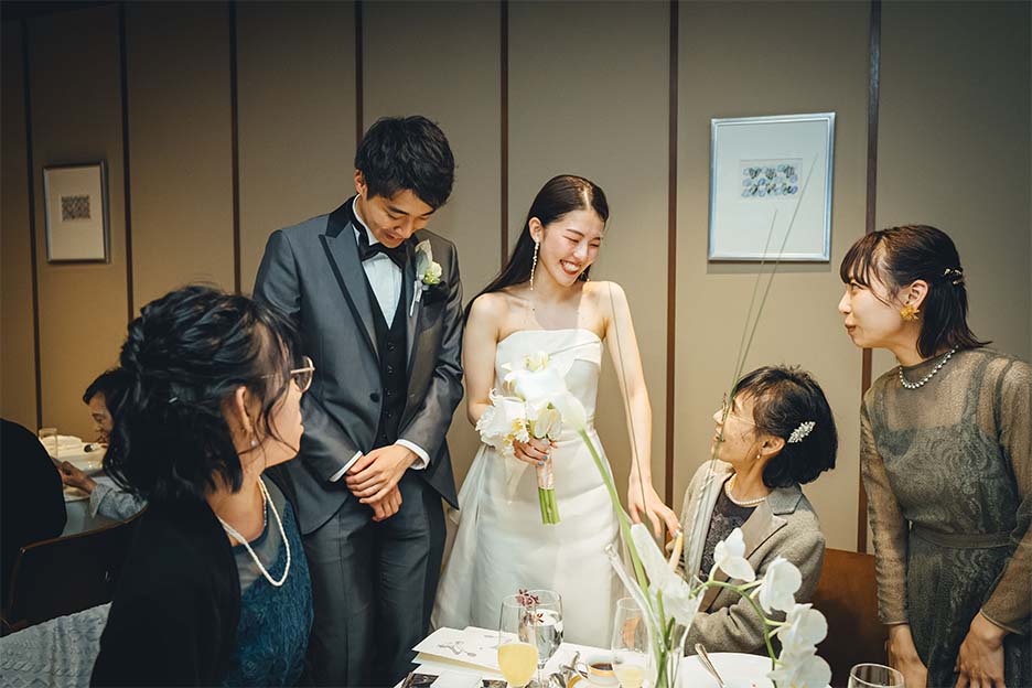 たくさんのおめでとうを受け取り、ありがとうを伝えあった時間は、近しいご親族だけの空間だからこそ、ゆるやかで優しい空気に包まれた結婚式になりました。