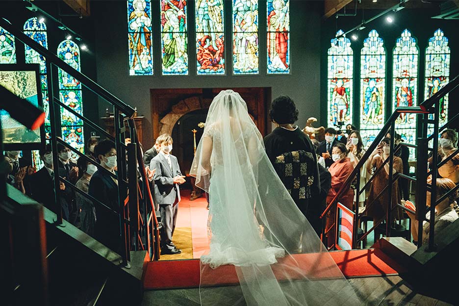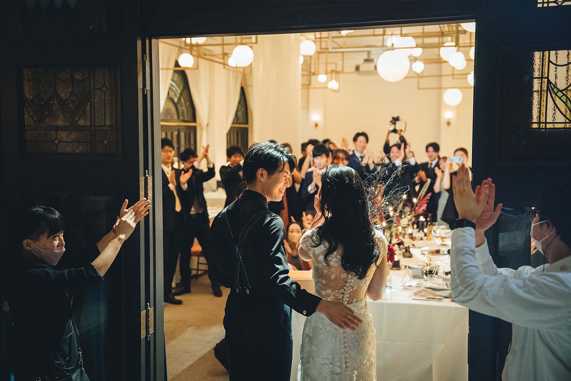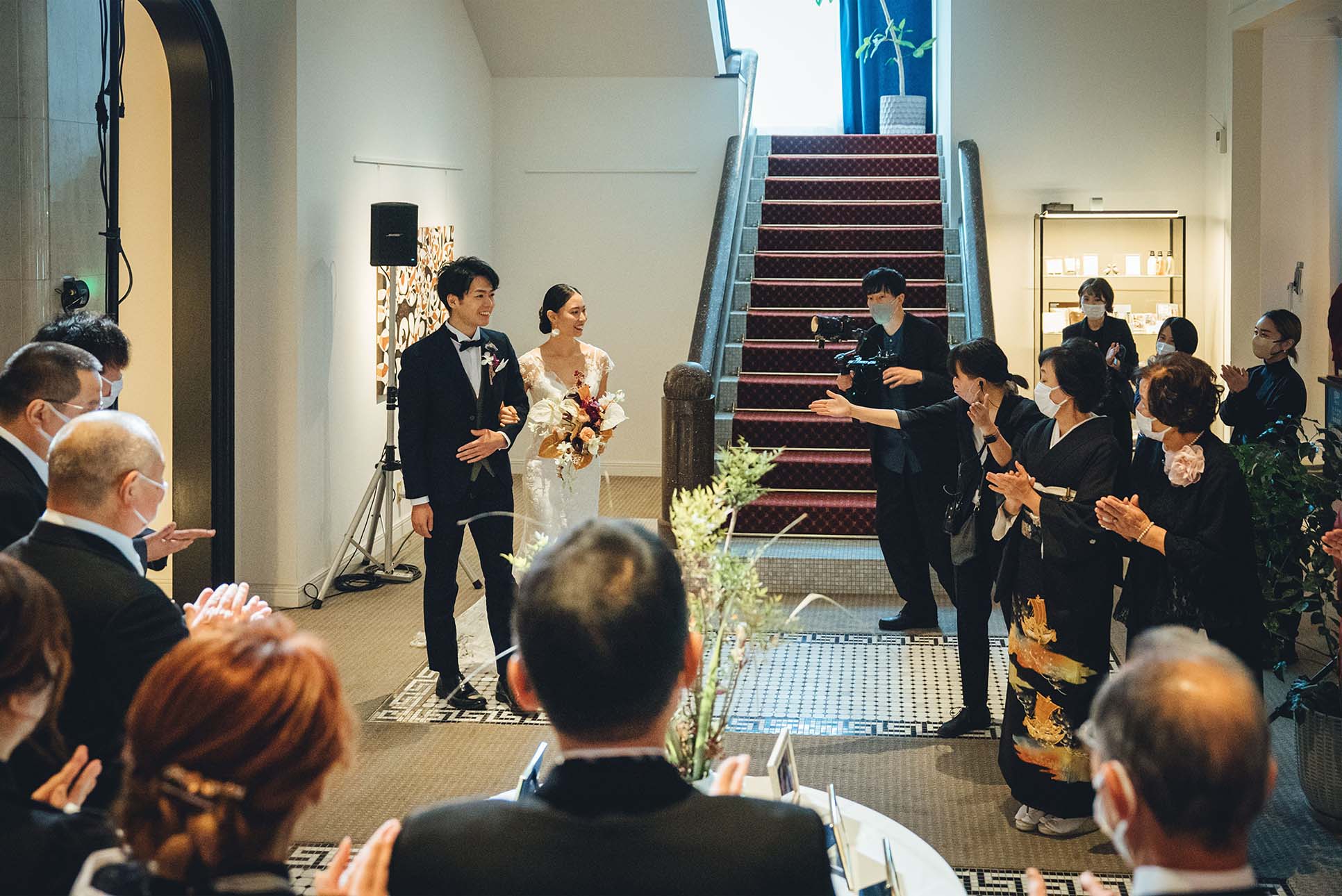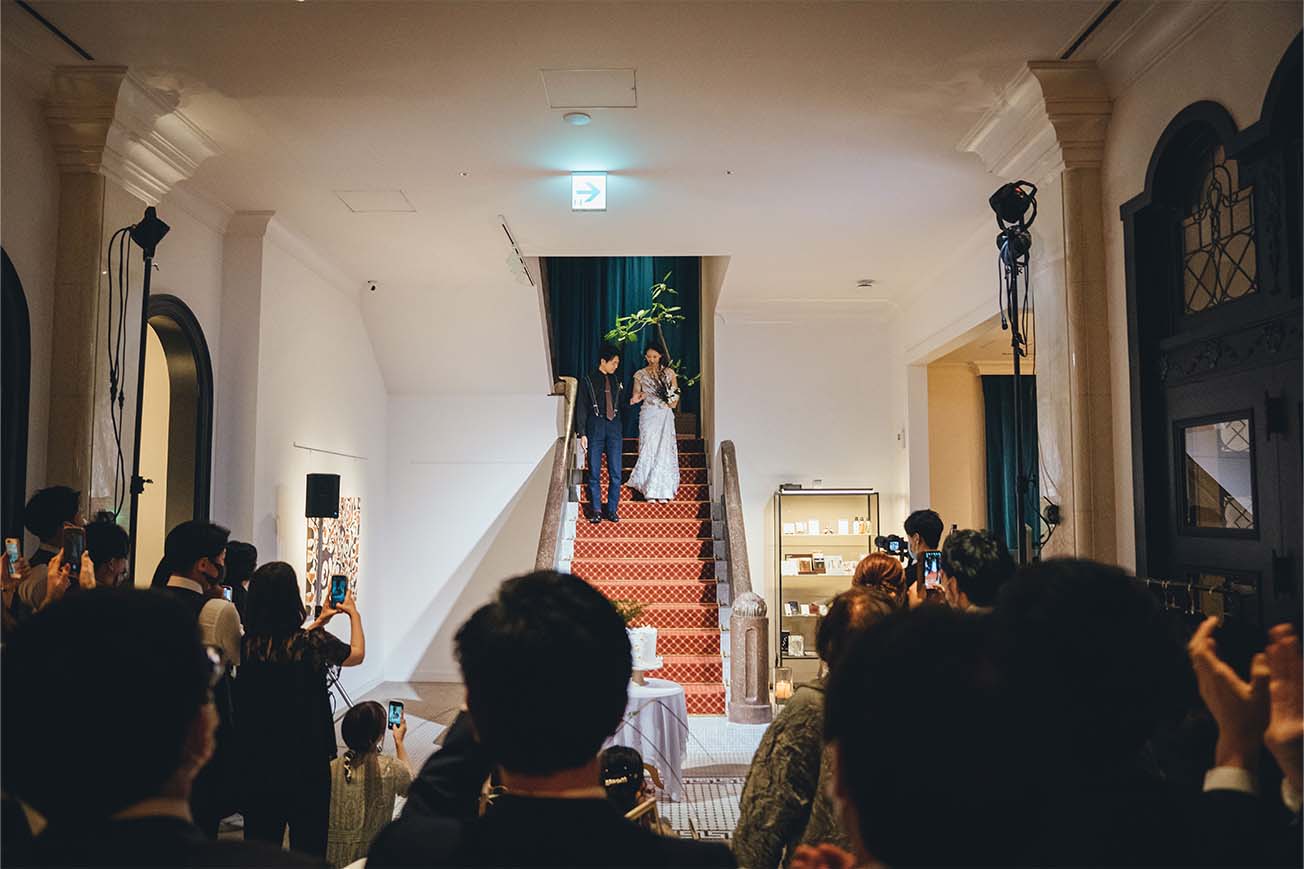 「悩みに悩んで選んだドレス姿、友人だけではなくて親族にも見てもらいたい!」という希望もしっかりと叶えられました。なにより一磨さんのエスコートでゆっくりと階段を降りてくるあゆみさんは、凛としていて本当に美しく輝いていました。