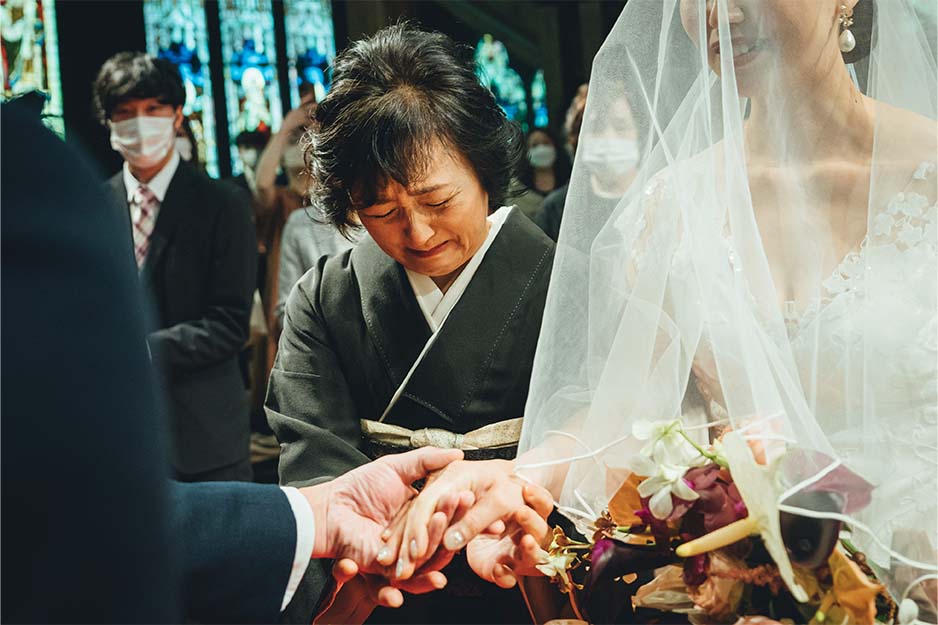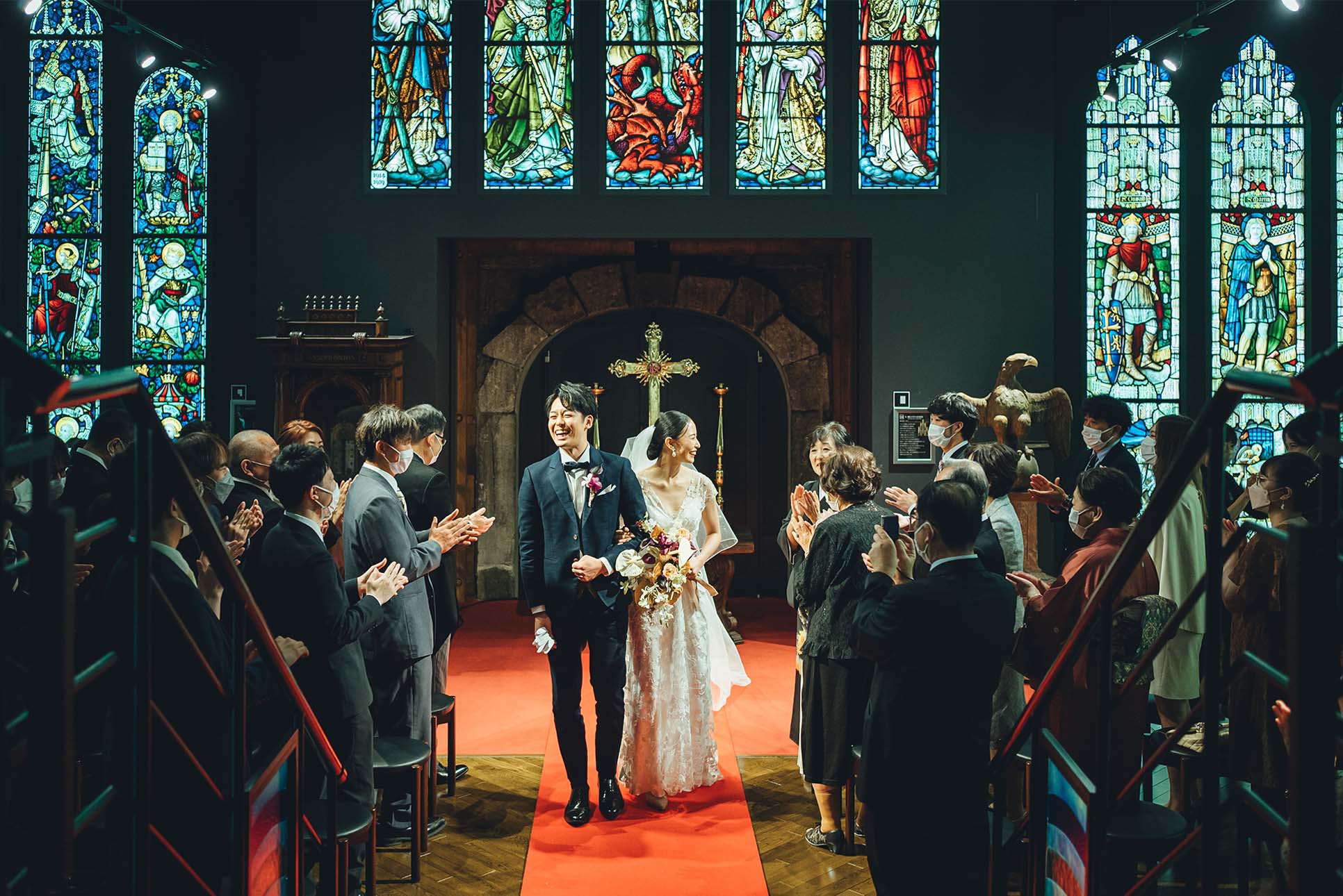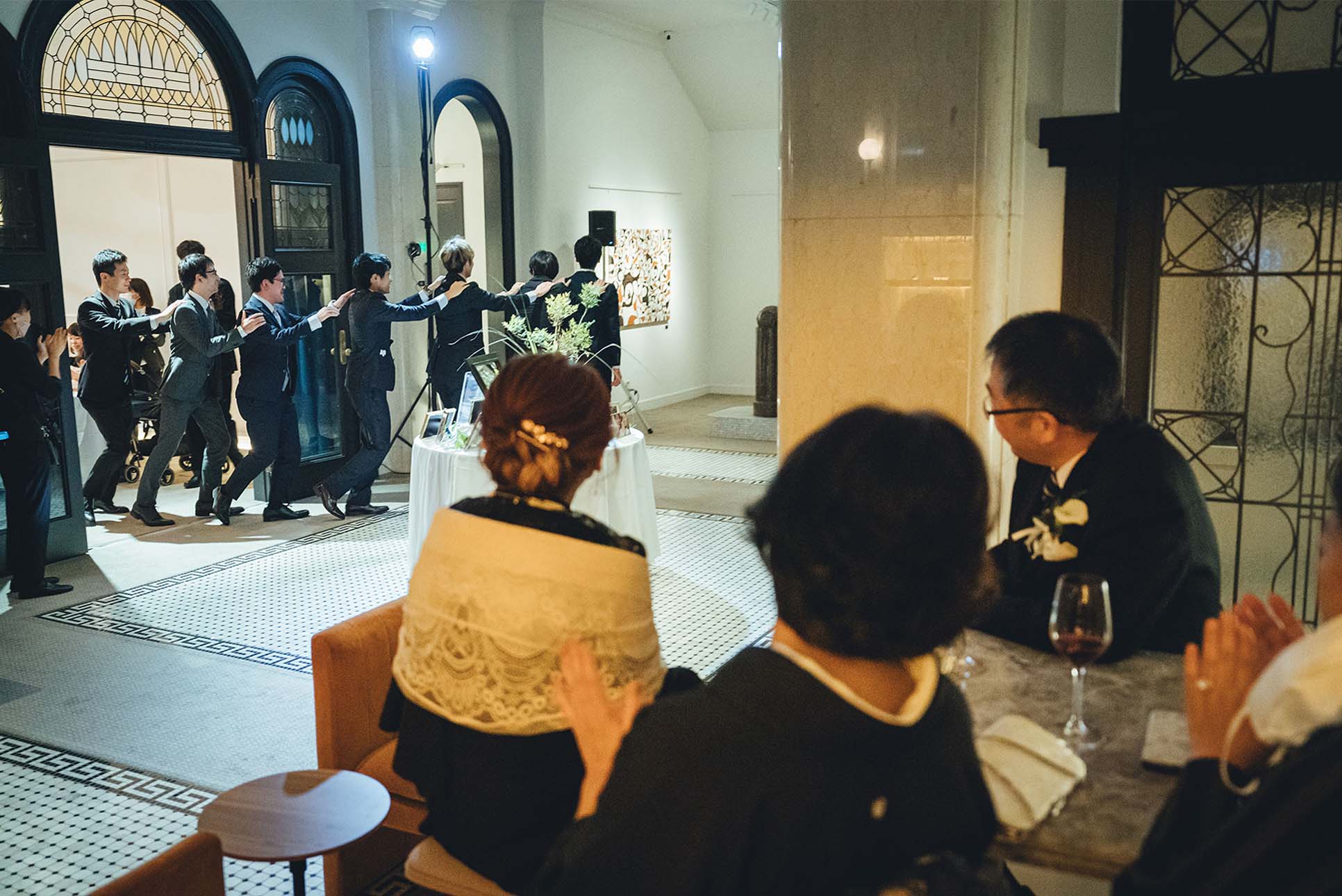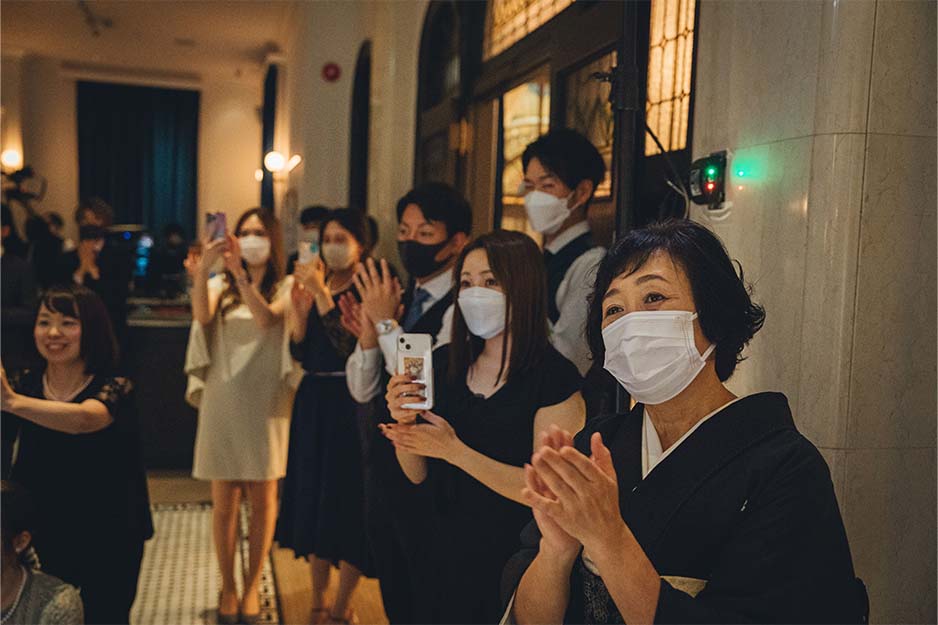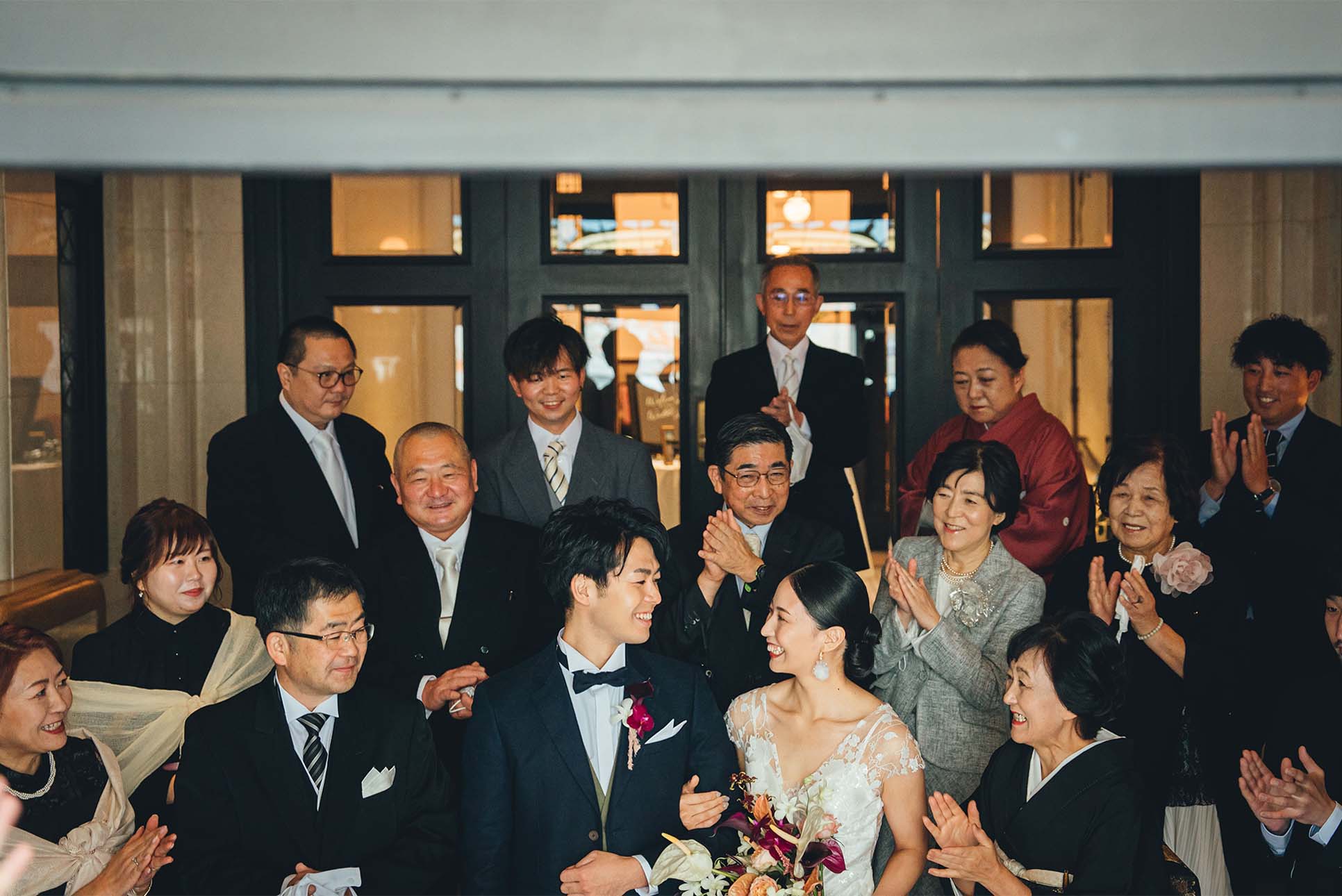 幼い頃からふたりを知っている家族・親族は、今日の晴れ姿を楽しみにされていました。一磨さんとあゆみさんが入場すると、拍手をしながら嬉しそうに見つめています。