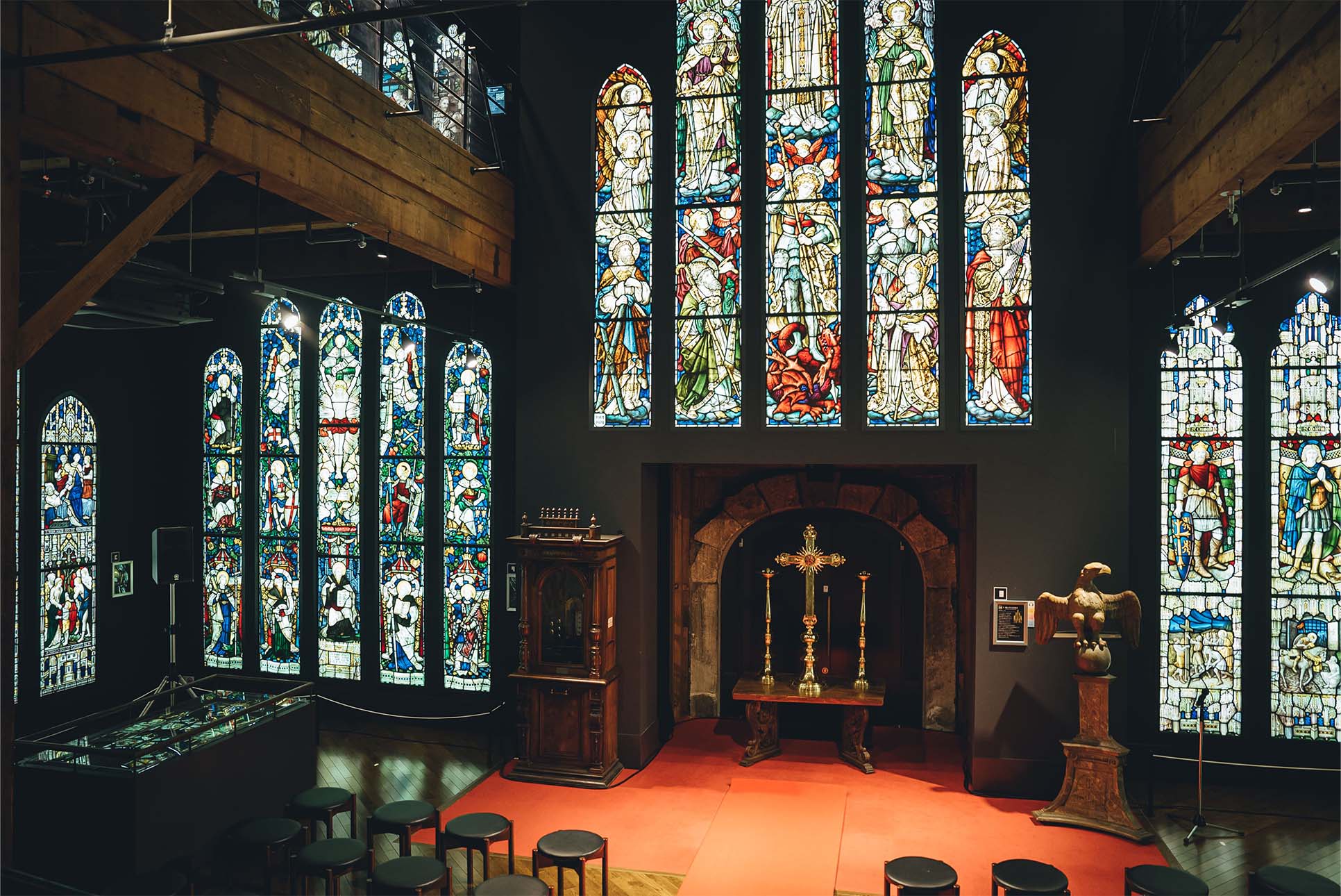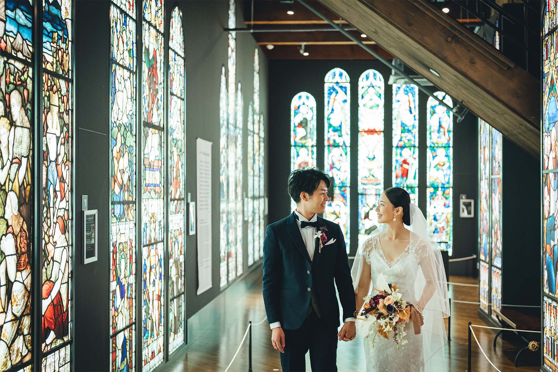 披露宴会場のホテルから徒歩3分の《似鳥ステンドグラス美術館》。