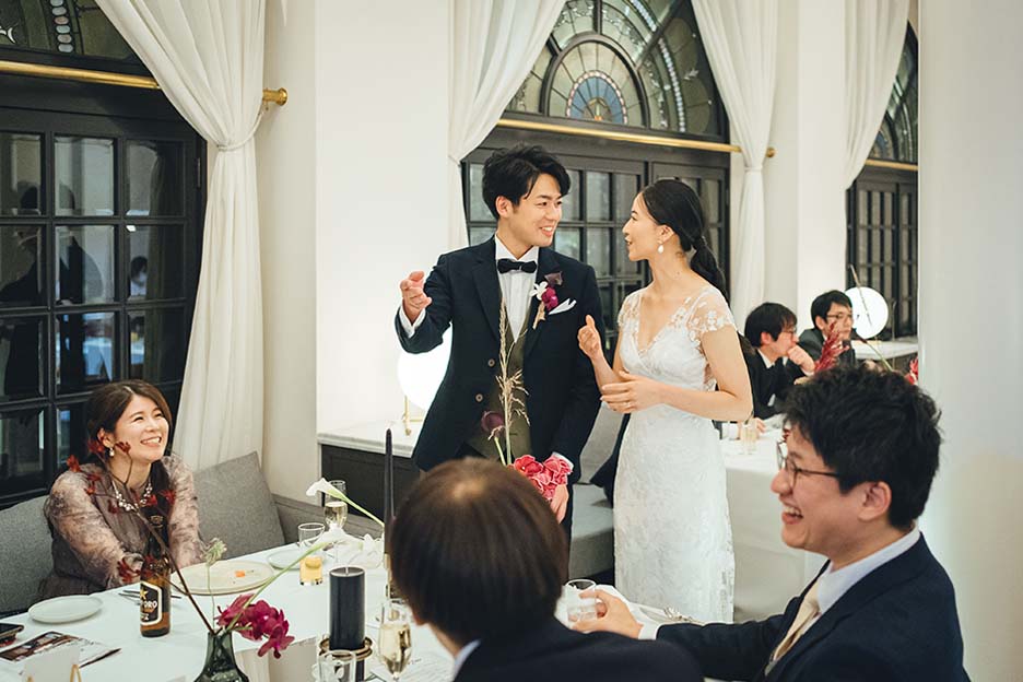 ホテルのおもてなしとレストランの料理のクオリティ、お集まりいただく全員に目の行き届くちょうど良い規模感。 幅広い年代の顔ぶれが集まる結婚式だからこそ「全員に心地よく過ごして欲しい」というふたりの願いが叶えられる場所。