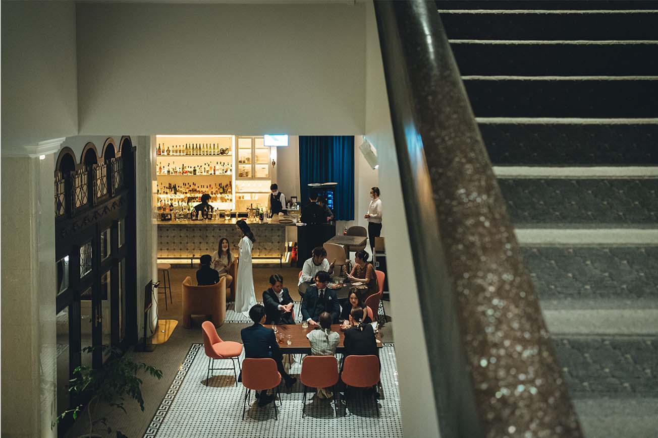 ホテルの顔であるロビーをそのままウエルカムスペースとして使えることや、パーティー会場のすぐ横にあるバーカウンターが二次会会場になること。36の客室があり、ゲストの宿泊フロアも指定できるから友人と親族それぞれに気兼ねなく過ごしてもらえること。