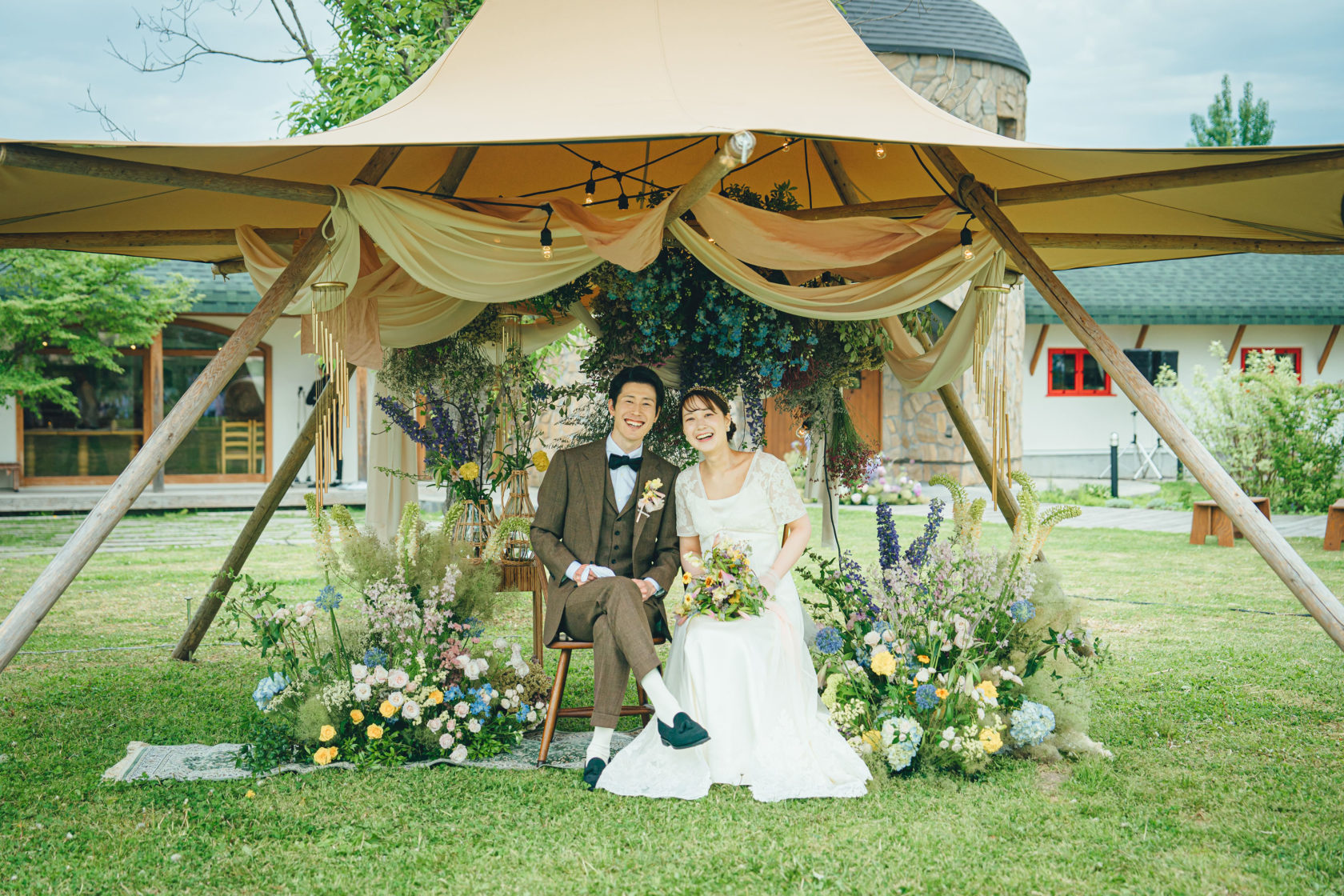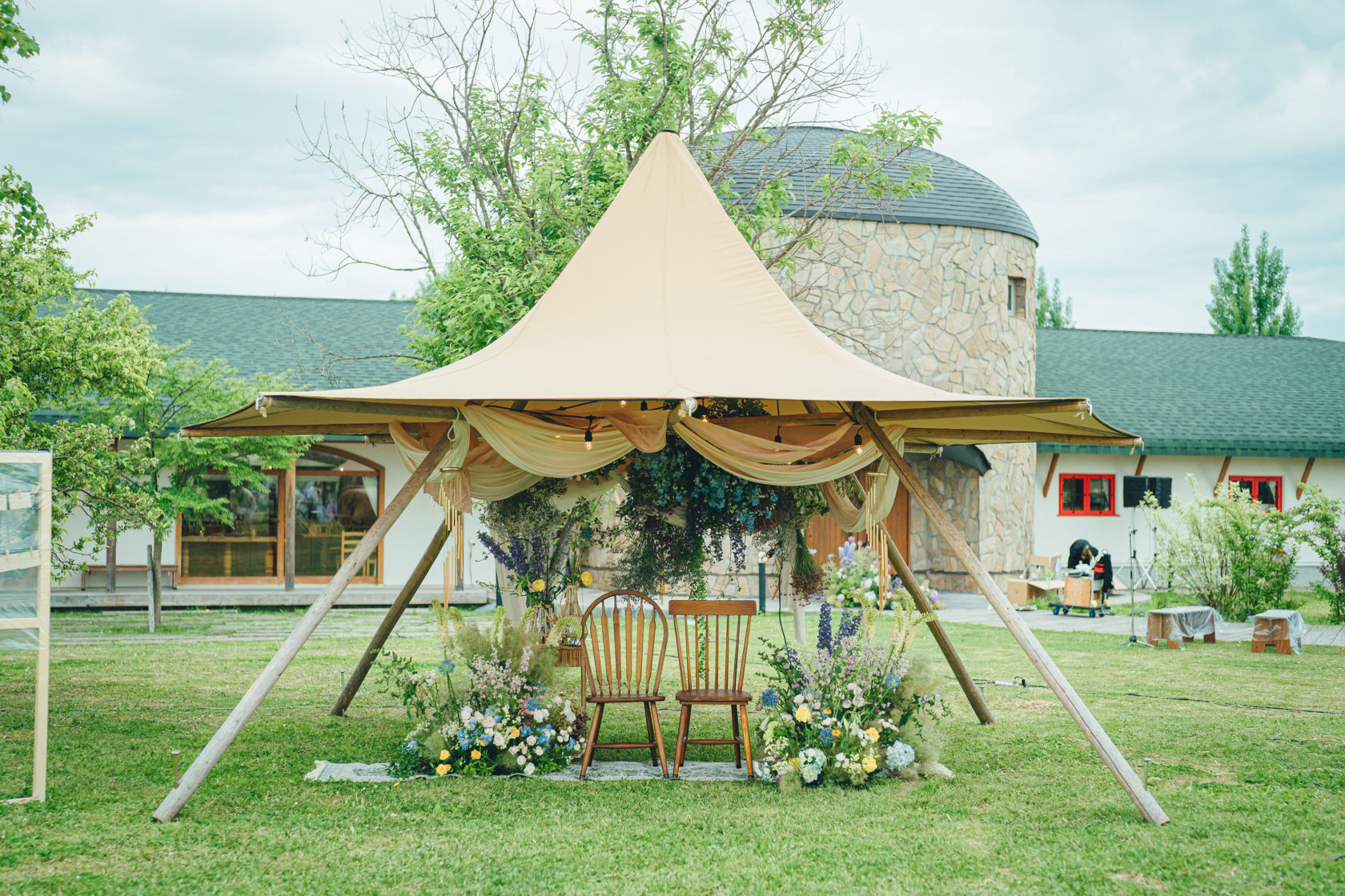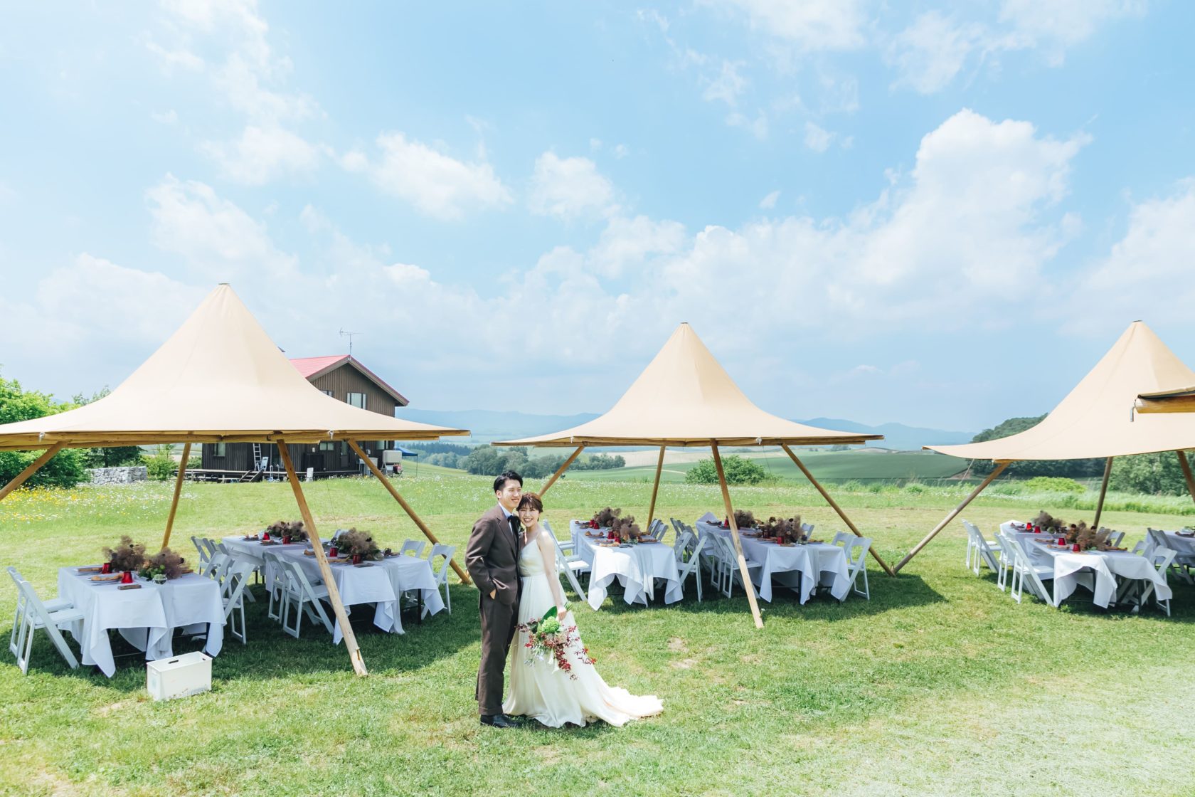 レストランを使ったウエディング、広大な芝生でのティピテントの使用など、様々な可能性が広がる会場です。美瑛が好き、憧れのガーデンウエディングを叶えたい、お料理にもこだわりたいカップルさんにおすすめの会場です。たくさんの妄想が膨らむこと間違いなしです。